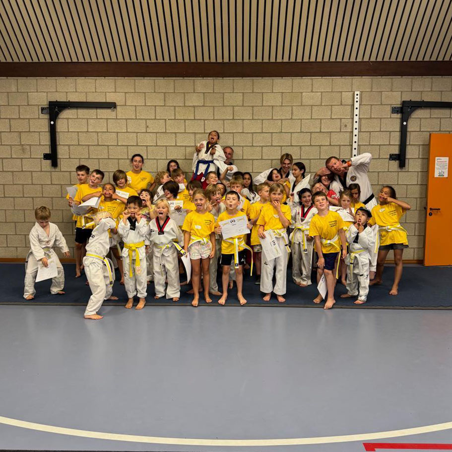 Op het einde van het kamp, geven wij onze deelnemers de kans om deel te nemen aan het Kup-examen. Dit is de perfecte kans om aan uw familie te laten zien wat je de afgelopen week hebt geleerd, hoe cool uw nieuwe skills zijn en hopelijk met een officiële nieuwe taekwondo-band en diploma het kamp af te sluiten J